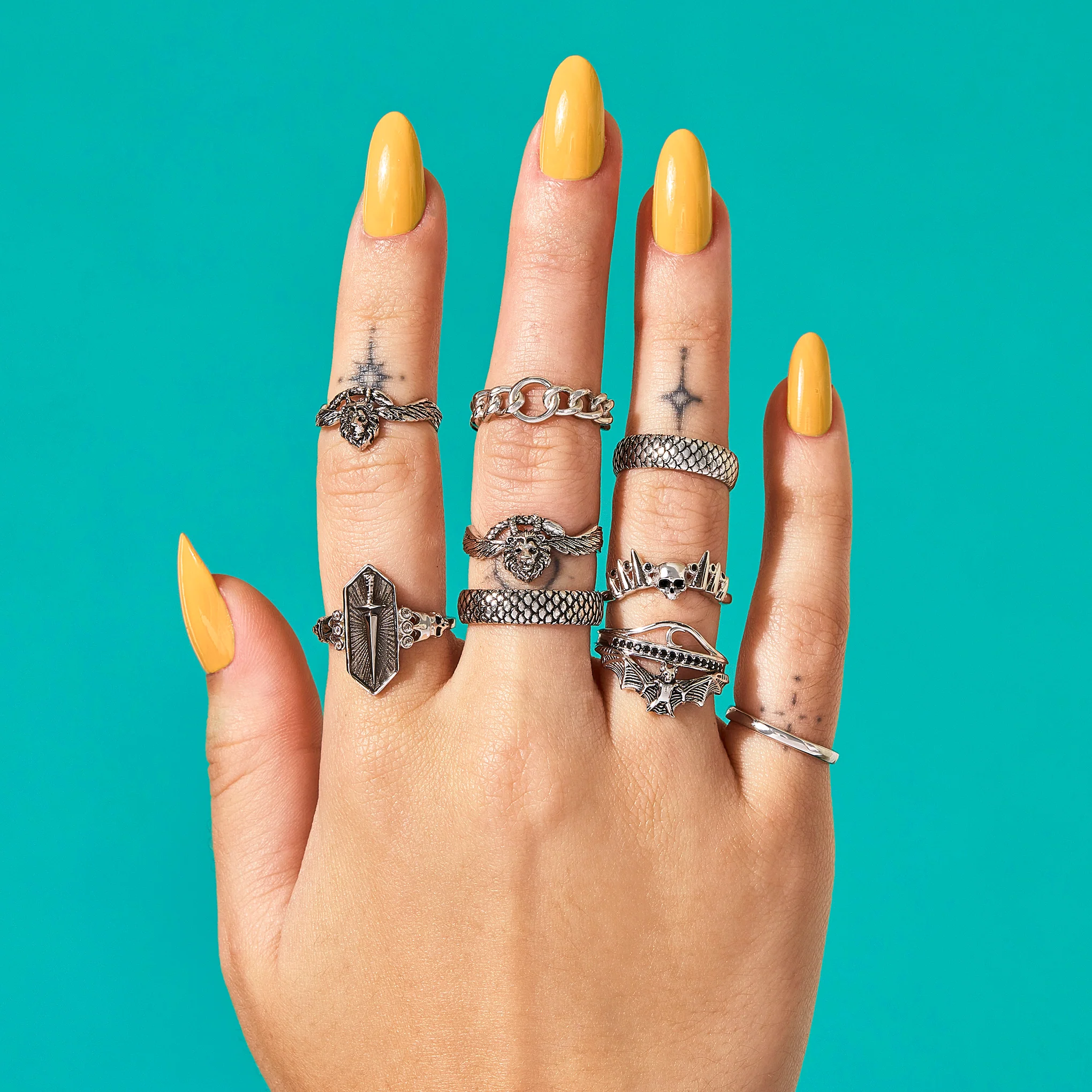 This intricately detailed ring features a lion’s head crowned with goat horns, a serpent’s tail, and the wings of a bird—an homage to the legendary Chimera, a symbol of chaos, strength, and the untamed. Crafted in sterling silver, it’s a bold statement piece that merges duality and wild imagination in one sculptural form. Let it guard your finger and command attention.