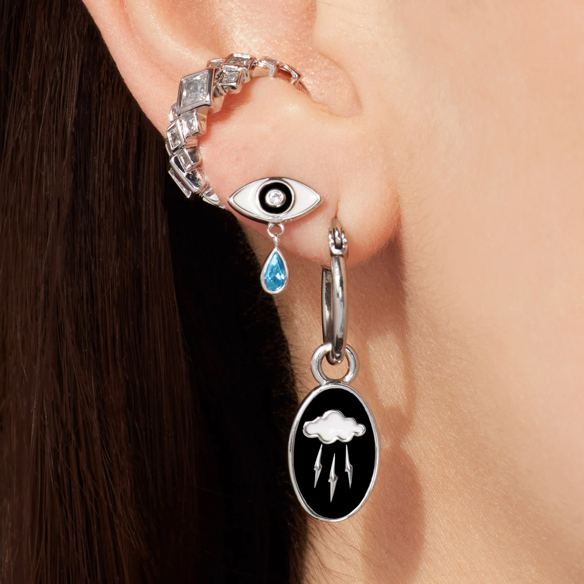 Clouds can symbolize change, higher thought, and a separation of the world above from the world below. Though rain clouds sometimes represent doom and gloom, rain can be cleansing and bring about healing while storm clouds can evoke a flash of inspiration or unavoidable realizations. Whatever clouds and lightning mean to you, show it in this striking charm.