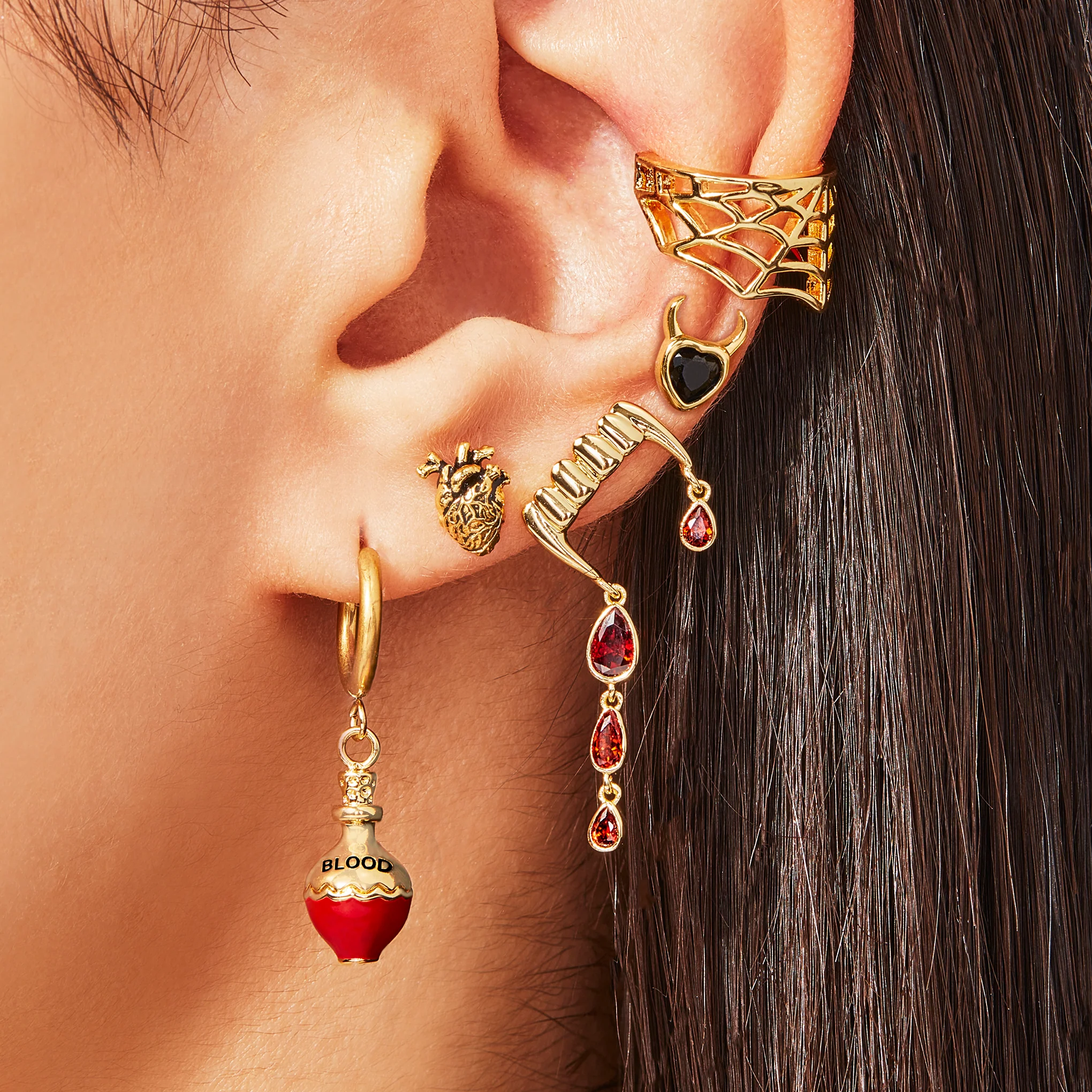 Vampires, a creature from folklore that subsists by feeding on the blood of the living, have been recorded in nearly every culture around the world for many centuries. Some of the earliest accounts date back to 4000 BC. According to several legends, to protect oneself, a person should make bread with the blood of a vampire and eat it. Would you eat vampire bread? Think on it and stay immortal with these drop stud earrings.