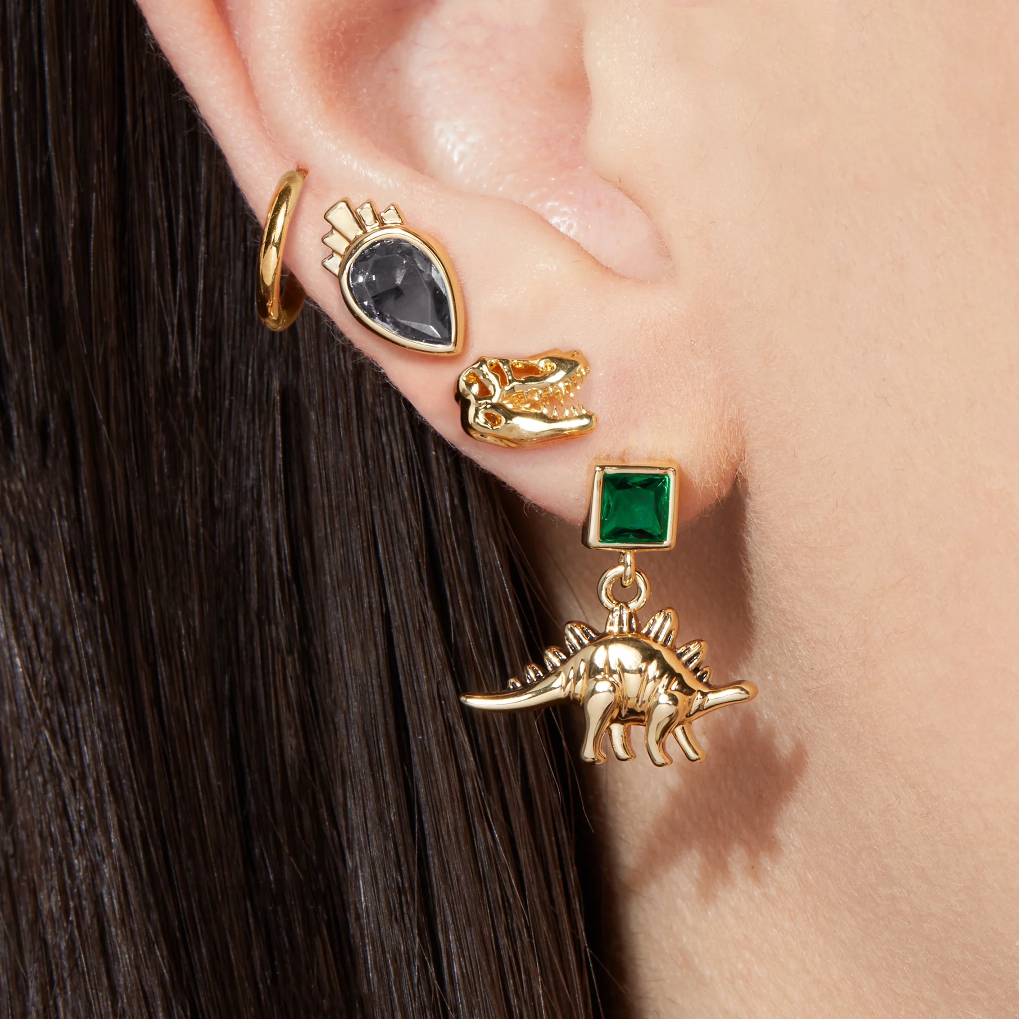 Many people think that the biggest threat to Stegosaurus was Tyrannosaurus Rex, yet Stegosaurus had already been extinct for approximately 80 million years before the appearance of Tyrannosaurus. That means less time separates us from Tyrannosaurus Rex than separated T-Rex from Stegosaurus. A specimen of Allosaurus - a large two-legged predator dinosaur pre-dating Tyrannosaurus Rex by 80 million years - bears puncture wounds that match the points of Stegosaurus tail spikes. This finding led scientists to determine that the slow paced herbivore used its tail as a weapon. These stud drop earrings pay homage to the toughest vegetarian to ever roam the Earth.